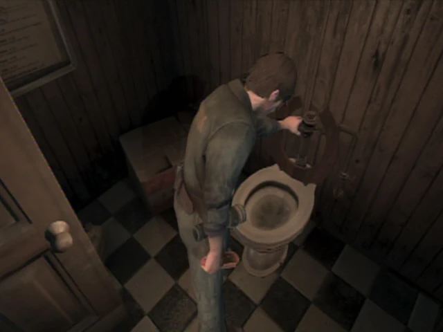 En Silent Hill 2, James Sunderland comienza su viaje en el interior de los baños de una Plataforma de Observación del Lago Toluca, donde se refresca la cara frente a un espejo antes de continuar. Más tarde, en el baño de la habitación 203 de los Apartamentos Blue Creek, James saca con la mano del inodoro una billetera con un código que abre una caja fuerte en el salón de ese mismo apartamento. Más tarde conoce a Eddie Dombrowski en un baño.