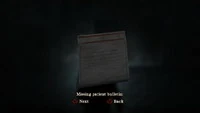 El boletín de paciente desaparecido es una nota que Alex Shepherd puede leer en Silent Hill: Homecoming. Esta nota está clavada en un tablón de anuncios en el 2º piso del hospital Alchemilla, así como en el centro de enfermeras del Otro Mundo del mismo hospital. La nota señala que un paciente ha desaparecido. No está completa, ya que una parte se ha vuelto ilegible.