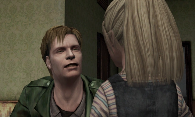 Heather también hace referencia a James en una escena opcional. En el centro comercial, comienza a meter su mano en un inodoro pero se detiene diciendo: "Olvídalo. Esto es demasiado asqueroso". Luego mira fijamente al jugador y pregunta: "¿A quién se le ocurriría hacer algo tan desagradable?". Esta escena sólo se desbloquea si en la PlayStation 2 del jugador hay una partida guardada de Silent Hill 2.
