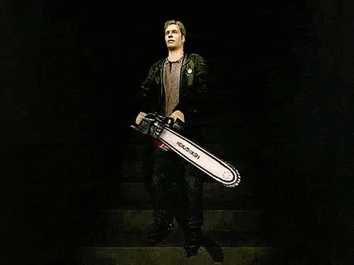 - Si James empuña la motosierra, puede levantarla por encima de su cabeza y gritar si el jugador espera cerca de un monstruo muerto. Si el jugador entra en modo de espera con la motosierra equipada, la dejará con la hoja en el suelo y se apoyará en ella como si fuera un bastón.