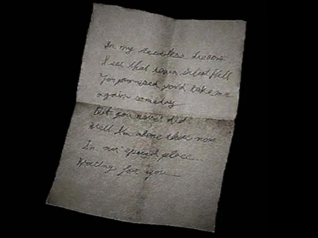 En cambio, James se vuelve delirante; y está convencido de que Mary lleva tres años muerta por una enfermedad terminal, y que ha recibido una carta póstuma de ella afirmando que la espera en Silent Hill en su "lugar especial". (En la novelización, James se pregunta si la carta fue una broma de uno de sus vecinos o de uno de sus compañeros de trabajo).