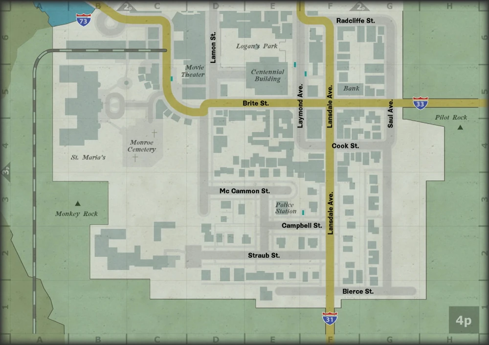 En esta calle se puede iniciar la misión secundaria "Jaula para pájaros" en el portal de una casa abandonada. También, la calle contiene la única entrada a la Comisaría de policía de Hillside que es una grieta en una pared. Mc Cammom St está cortada hacia el oeste por un muro de metales y tabiques que impiden el acceso a Lamon St. Además, conecta con Campbell St al sur y con Straub St por unos callejones orientados en la misma dirección.