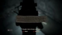 La nota de Ron es una nota que Alex Shepherd puede leer en Silent Hill: Homecoming. Se encuentra en la cama de la celda B2 de la Prisión Overlook y es una petición de ayuda. Habla de como los guardias se han esfumado y como los presos están empezando a pasar hambre y a morir de inanición.