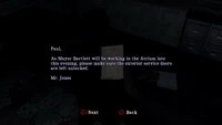 La nota para Paul es una nota que Alex Shepherd puede leer en Silent Hill: Homecoming. Esta nota se encuentra en el mostrador de la recepción del Grand Hotel. Está dirigida a un tal Paul y habla sobre el alcalde Bartlett.