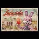 Una postal que muestra a Robbie el Conejo en el parque de atracciones de Lakeside con un cono de algodón de azúcar. Se encuentra encima de la cama de la habitación 507.