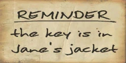 La nota en la puerta. (Recordatorio: La llave se encuentra en la chaqueta de Jane)