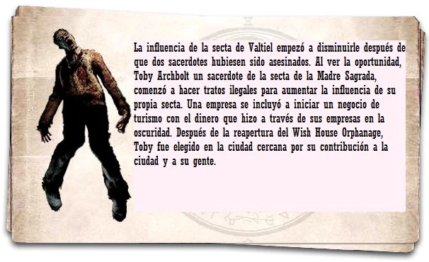 Toby Archbolt es un fantasma de Silent Hill 4: The Room. Era un sacerdote de la secta de la Madre Sagrada de la Orden y trabajaba en el Orfanato Wish House. Después de la muerte de Jimmy Stone y George Rosten, y el consiguiente debilitamiento de la secta de Valtiel, Archbolt trató de aumentar la influencia de su propia secta dentro de la Orden. Durante un viaje a México, Walter Sullivan empujó a Toby por un acantilado, por lo que él es la única víctima de la serie que ha sido asesinado fuera de los EEUU. Toby Archbolt se le conoce como la víctima número 14 en el juego. También es el primer personaje afroamericano de la serie Silent Hill. Su objeto personal dejado para los mundos de Walter es un libro de dibujos antiguos encontrados en el lugar del asesinato. Aparece por primera vez en el Mundo del Metro.