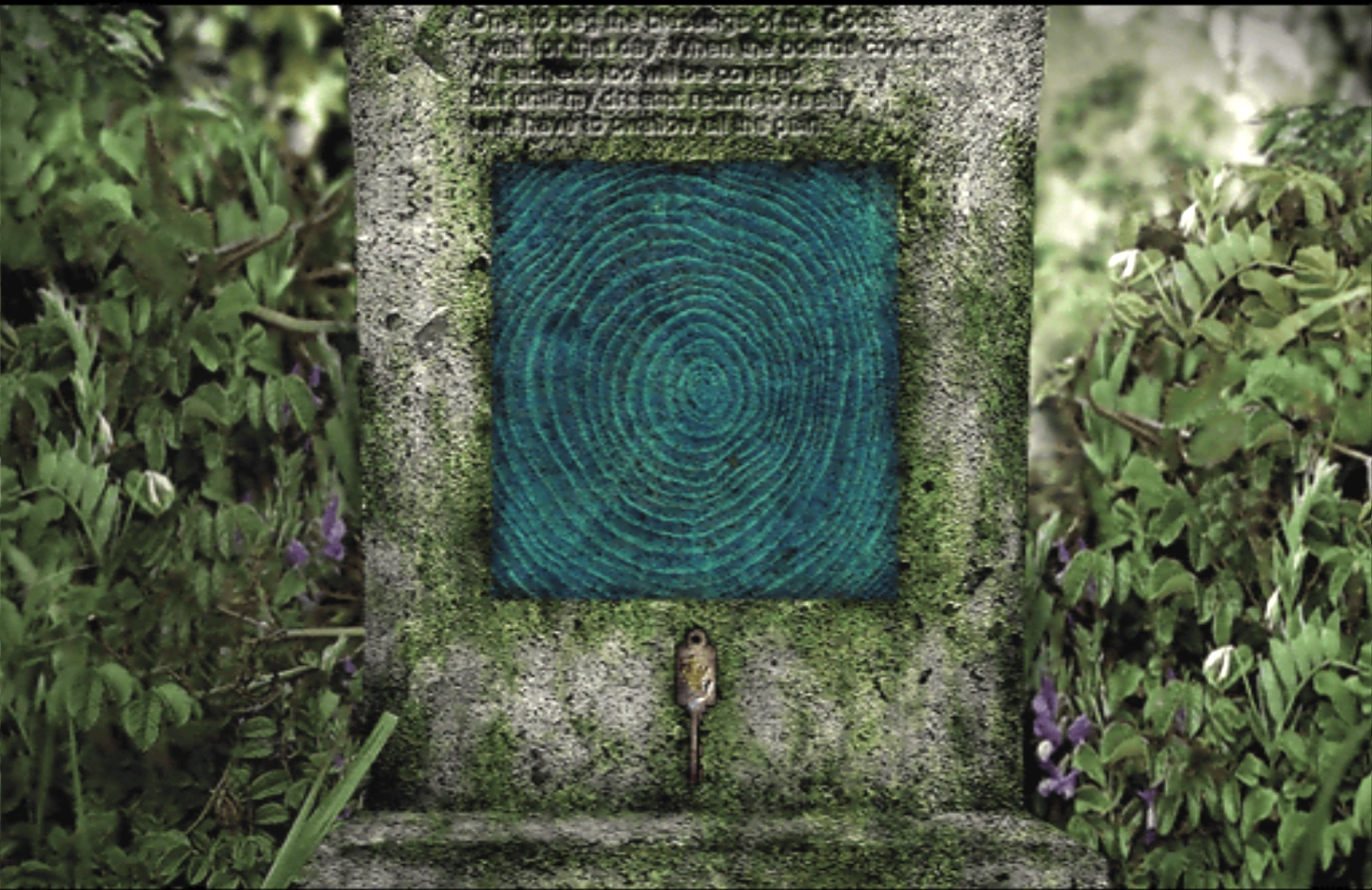 Maria si imbatte nell'enigma all'interno di Villa Baldwin. Quando sale per le scale del caminetto della magione, situato nel salone principale, ella sbuca in una sorta di giardino segreto dove trova una lapide su cui è inciso un epitaffio: