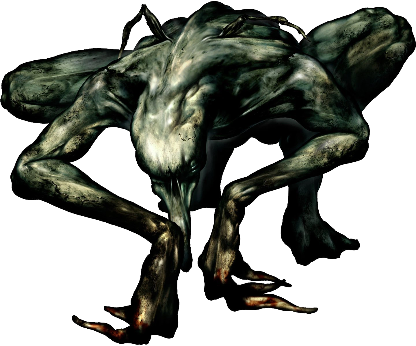 La creatura assomiglia a un grosso rettile di colore verde, munite di grossi artigli che producono un forte rumore quando battono su una superficie solida. Ha degli arti molto lunghi, più simili a quelli di un insetto.