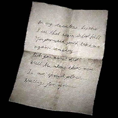quando era malata, e aveva intenzione di darla a suo marito James Sunderland una volta morta. E' proprio il mistero che ruota attorno questa lettera che fa andare James a Silent Hill.