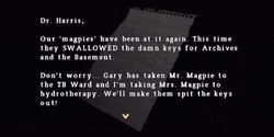Il Messaggio Ingiallito è un documento che Travis Grady può rinvenire durante la sua avventura in Silent Hill: Origins. Si trova vicino la porta che conduce all'ufficio del dottore al primo piano della Casa di Cura Cedar Grove. La nota è indirizzata al dottor Harris e riguarda alcuni pazienti problematici.