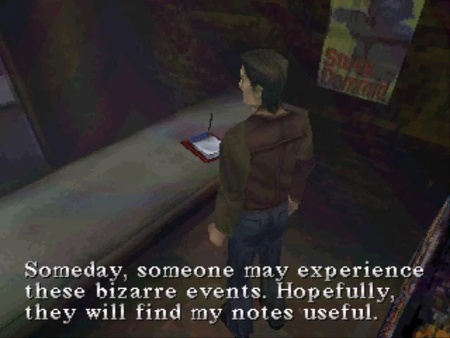 Nel primo gioco, il salvataggio ha la forma di un block notes con una penna. Questo salvataggio può essere trovato per la prima volta nel Cafe 5to2, prima che il protagonista Harry Mason venga attaccato da un Air Screamer. E' probabile che il salvataggio prenda la forma di un block notes dato che Harry è uno scrittore.