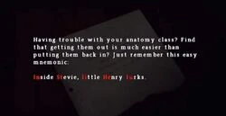 Schema Mnemonico per gli Studenti è un documento che Travis Grady può leggere durante la sua avventura in Silent Hill: Origins. Si trova al secondo piano dell'Ospedale Alchemilla, nel bagno delle donne e fornisce degli indizi per risolvere l'Enigma di Anatomia.