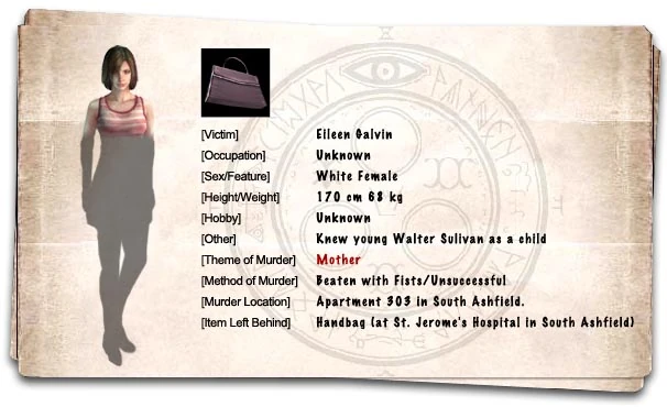 На кровати Айлин лежит плюшевая игрушка маскота парка развлечений «Лейксайд» кролика Робби, что говорит о том, что, как и Генри, Айлин либо жила, либо когда-то посещала Сайлент-Хилл.