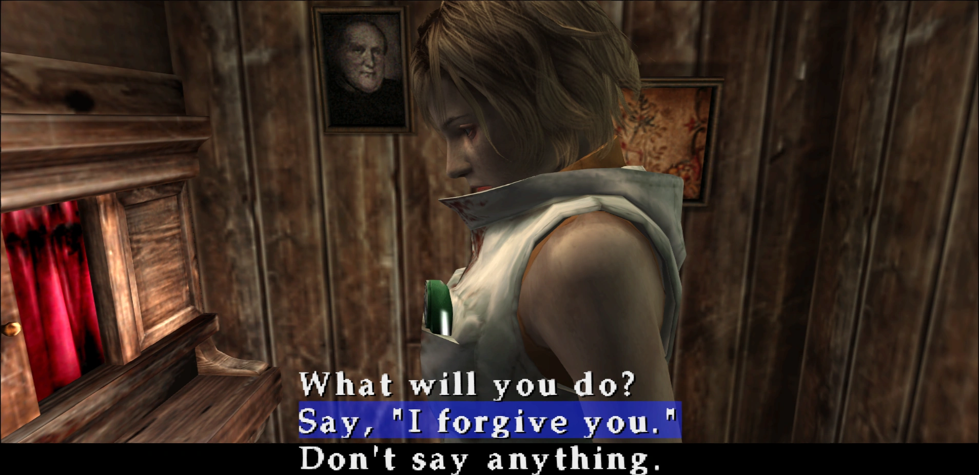 Игрок должен решить: должна ли Хизер находящаяся по другую сторону кабинки для исповеди простить исповедующуюся, промолчать или уйти. Если Хизер снова осмотрит кабинку для исповеди, Хизер прокомментирует: «Больше нечего сказать». Роль исповедующейся предназначена для того чтобы поставить игрока перед моральной дилеммой — нет четкого выбора «правильно» или «неправильно»: