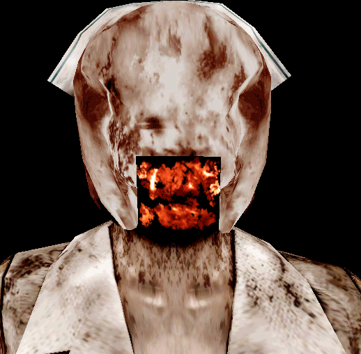 У каждой из них есть неизвестная субстанция в форме красного квадрата вокруг рта, что может означать что они либо кашляли кровью, либо питались кровавой плотью. Это может быть также кровь, краска или макияж. У Пузыреголовых медсестер в Silent Hill 2 также были подобные красные квадраты над ртом, что может являться отсылкой.