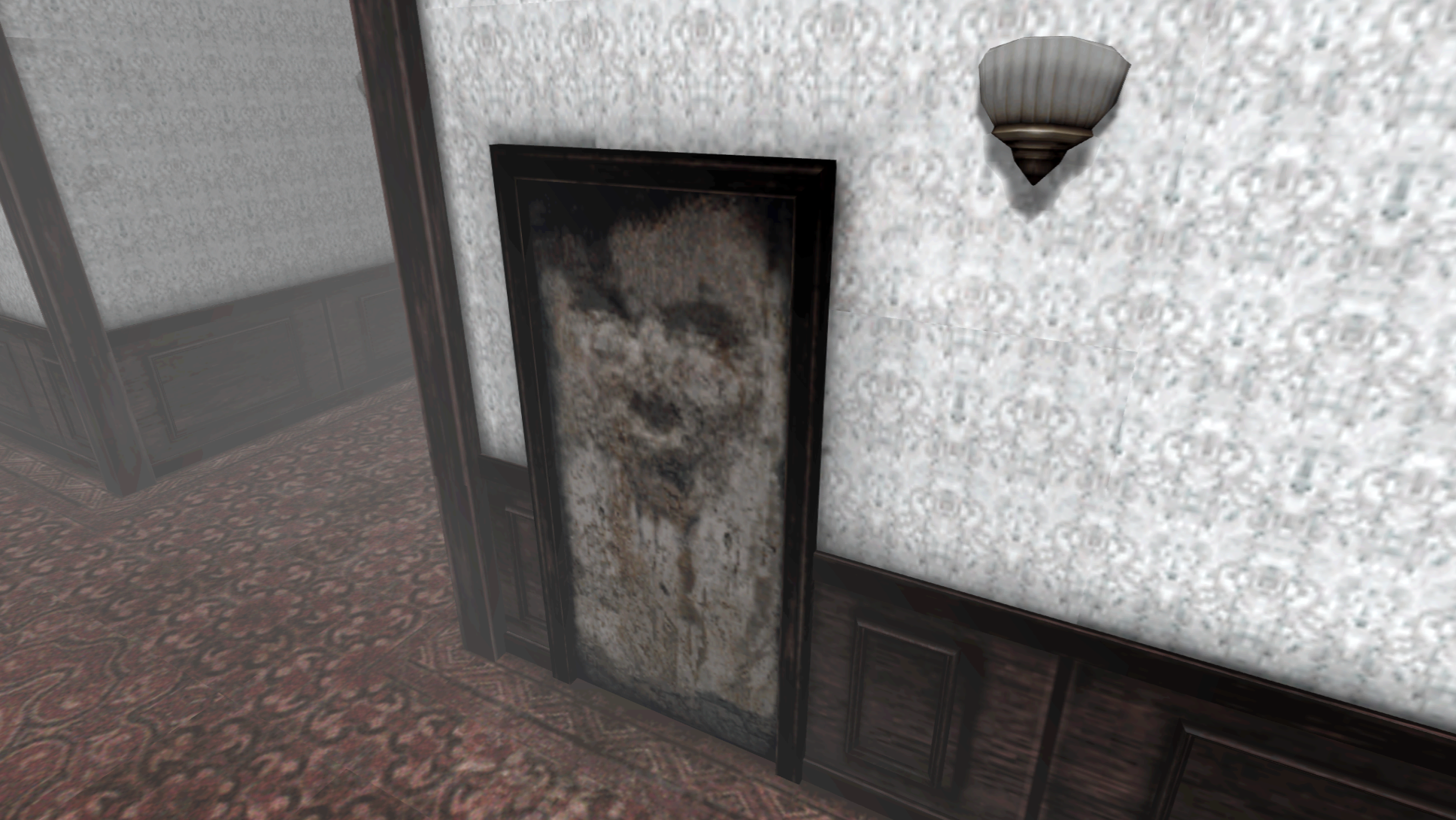 - После победы над двумя Пирамидоголовыми в отеле, Джеймс заходит в коридор, где на двери есть пятно, напоминающее на жуткое лицо, отпечатанное на стене. В Art of Silent Hill даже есть изображение с ним, подразумевающее, что было это сделано намеренно[1].