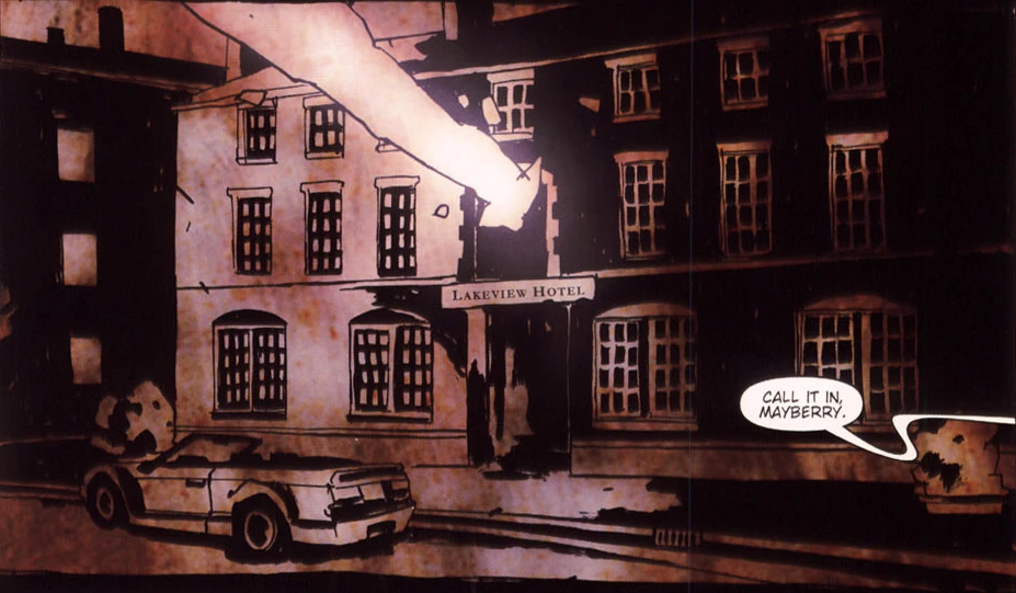В комиксе The Grinning Man главный антагонист собирает людей, которых он похитил, в отеле «Лейквью», поскольку, как объясняет детектив Мэйберри, отель нестабилен относительно времени и пространства. Любой, кто сможет манипулировать этими условиями, сможет спрятать в отеле множество людей. Ухмыляющийся человек связывает своих жертв внутри и клеймит их своей меткой, чтобы питаться их жизненной силой и насыщать свою магию.