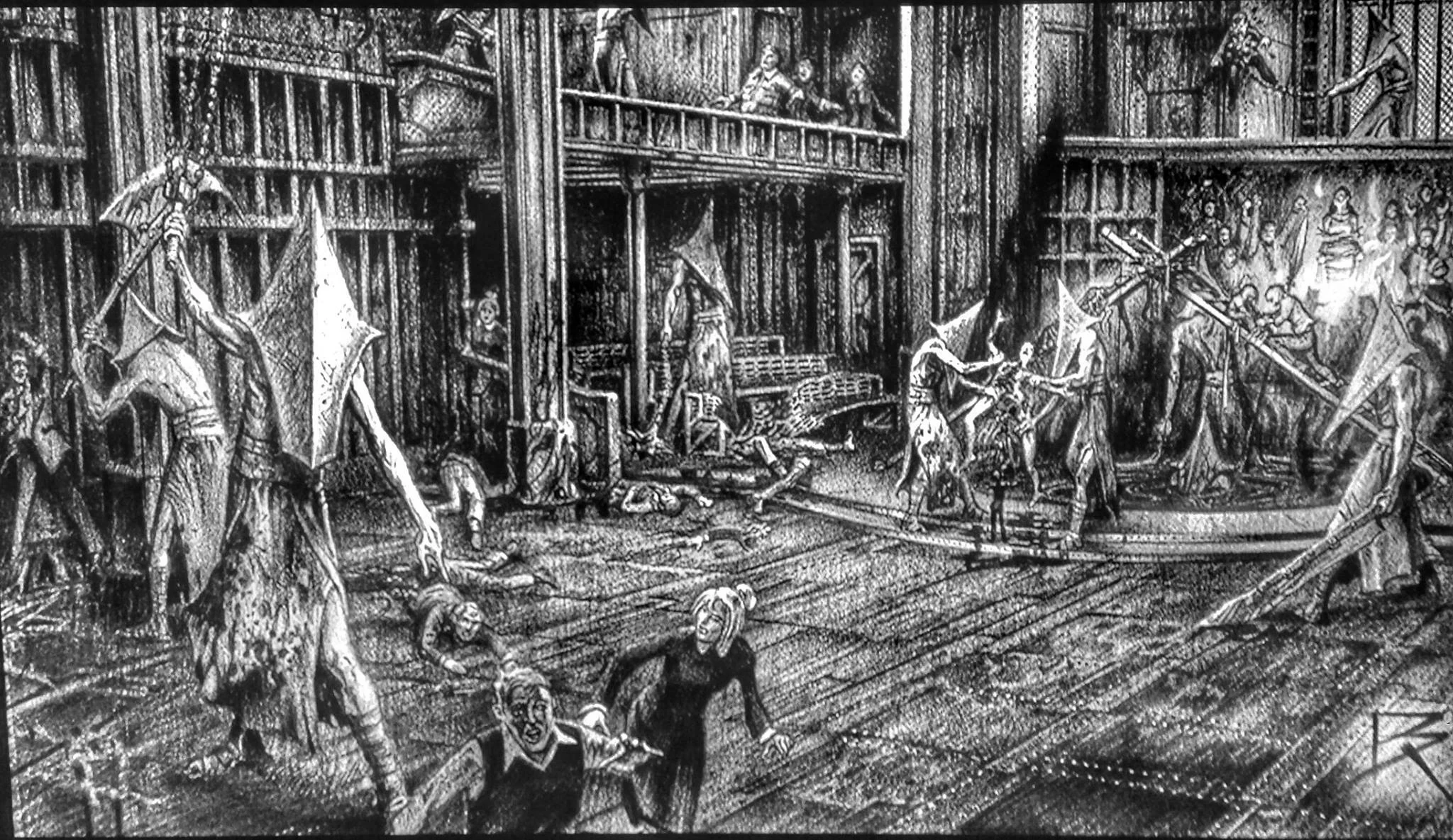 Масахиро Ито, дизайнер монстров Silent Hill 2, а также многих других частей серии, создал арт механического существа с головой геометрической формы во время учёбы в Университете искусств Тама в 1995 году. Впоследствии это стало вдохновением для дизайна Пирамидоголового.
