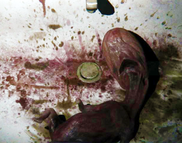 In Silent Hills: Playable Teaser, the player character encounters a manifestation of a fetus in a sink.