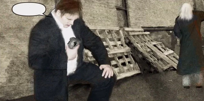As the man bears down on Douglas, he begins to scream about the Order and the arrival of Samael. The reporter is able to push him away, but Whately arrives and hurls the man into a nearby wall. As Douglas picks himself up off the ground, Whately greets the reporter and begins to cryptically hint at the events unfolding in town. He tells Douglas that the hunger he's always known, the hunger for the truth, will lead him to everything he seeks. He also warns the reporter that the world and the life he has known will be coming to an end that evening, and what comes after is Doug's to decide. Whately then vanishes.