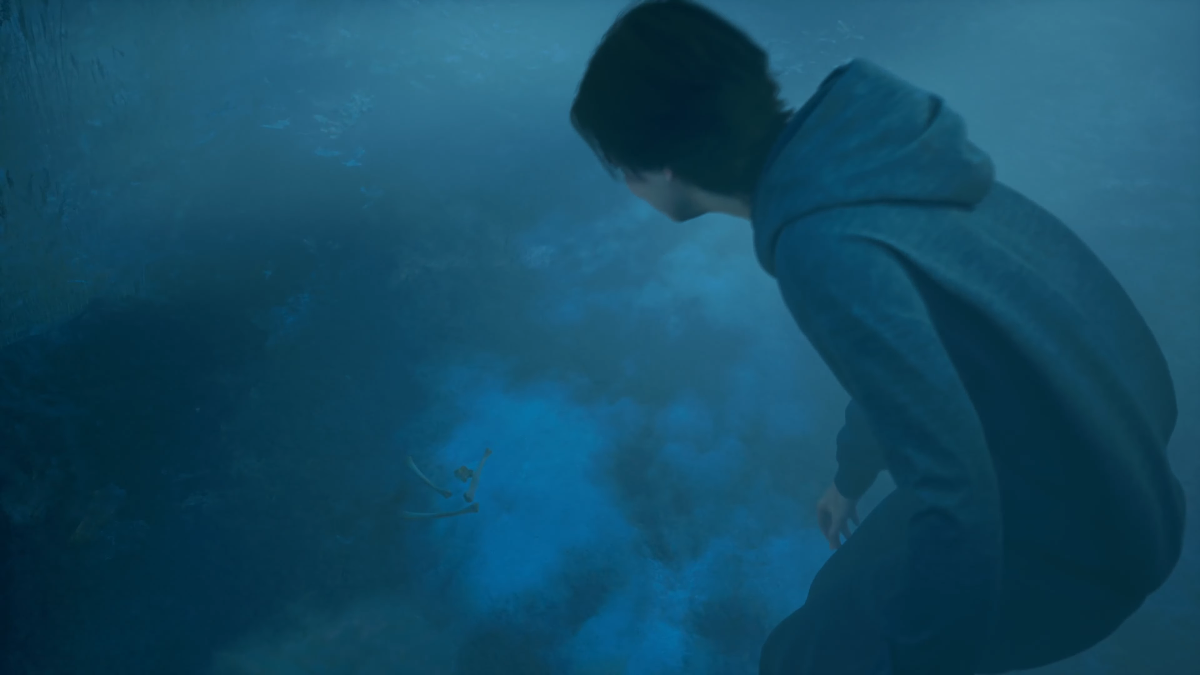 Eva finds bones dropped by the intruder.