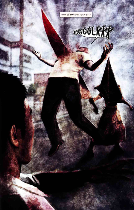 He is then impaled by a large knife, held by Pyramid Head.