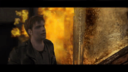 - During the scene with Angela on the burning staircase, before James says, "It's hot as hell in here", he raises his right hand to his face. When the scene's camera angle is hacked, James is shown apparently wiping his eye. While it may be interpreted as James fidgeting; having something in his eye; or wiping sweat off of his brow from the heat, it is also possible that James may be weeping for Angela and wiping a tear away.