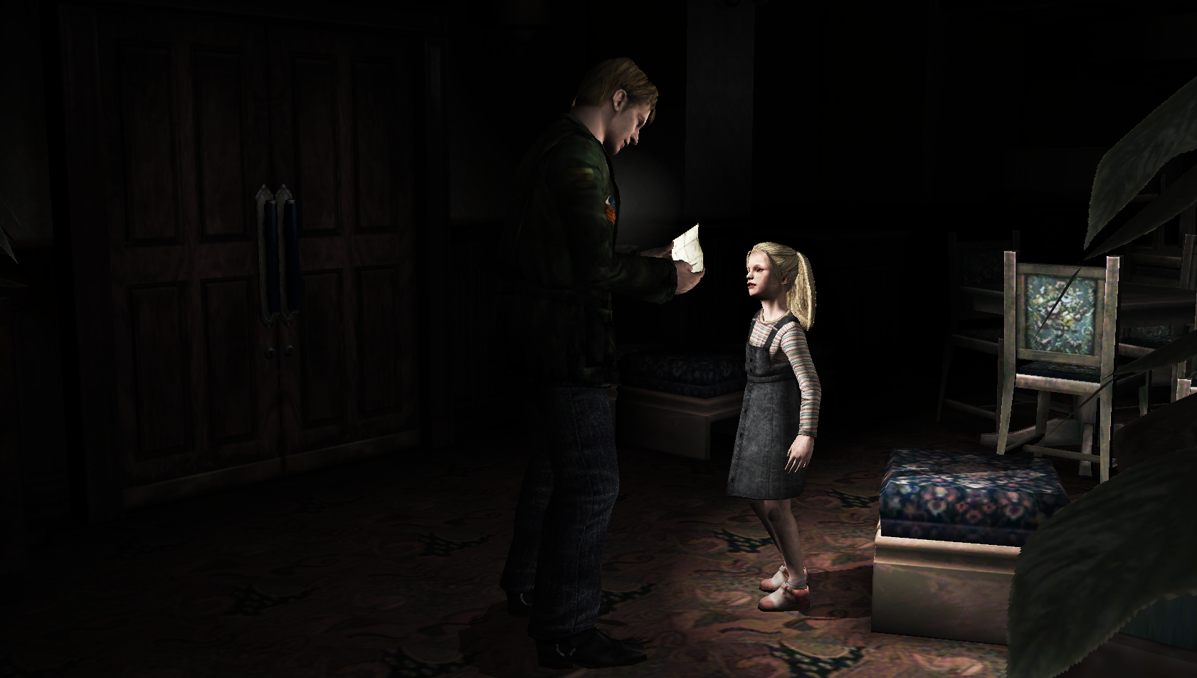James drives to Silent Hill, intending to kill himself in the town he and his wife cherished, to join her in death.[7] However, James is not the only one which Silent Hill seems to have summoned. He meets three of the visitors, Eddie Dombrowski, Angela Orosco and a girl named Laura, have seemingly been drawn to the town by some similar force.