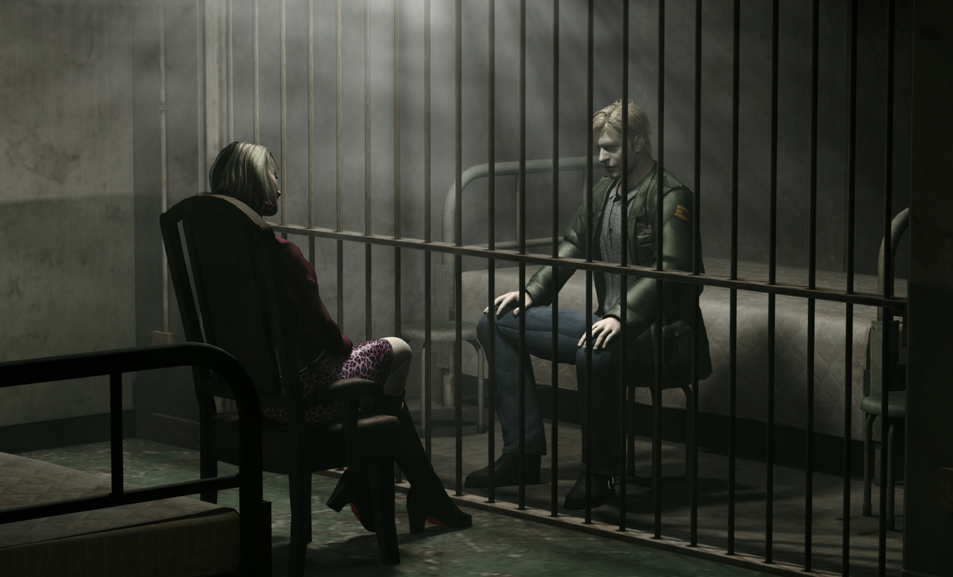 As James explores the empty prison facility, he finds himself within a maze. James finds Maria, locked inside a cell, alive and unscathed following her death in Brookhaven Hospital. Maria comes onto James and beckons him to find a way into her cell. She undergoes a change in personality, alternating between Mary and Maria's personalities at random. Maria also drops clues regarding Mary's "special place" and a videotape she and James made together. James soon relocates Angela, who is about to be attacked by the Abstract Daddy, a creature representing Angela's abusive father. After injuring the monster, Angela finishes it off in a series of violent attacks and has a tense confrontation with James about how he didn't want Mary around anymore.