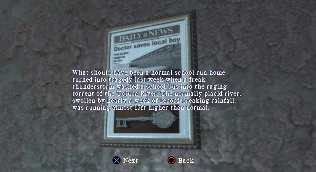 The Newspaper Article is a memo from Silent Hill: Homecoming found attached to a wall inside of the Shepherd's Glen Town Hall. The article details an accident that happened a few years prior to Homecoming. This is the event mentioned in the Instruction Manual that made Dr. Fitch a town hero.