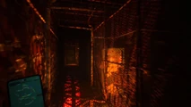Instead of blood or rust covering the walls, Murphy's Otherworld is more comparable to a prison-like setting with metal grates and heavy machinery appearing frequently, alongside numerous death traps including guillotines and tight corridors with spikes covering the walls, which symbolize Murphy's incarceration in the prison. As mentioned, water is the prominent feature of this Otherworld, and is found not only under grates in the floor, but also covering most of the Otherworld's structures, including pipes and barbed-wire fences, which appear to ripple as such.