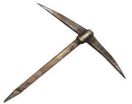 The Pickaxe of Hope is an item found near the end of Silent Hill 4: The Room. It is the counterpart to the Pickaxe of Despair, however, it is used as an item and not a weapon. The item is found embedded in the back of Room 302 of the Past and is used in the same spot at the current Room 302. It opens a hole which reveals a secret room, containing several blood filled refrigerators and the corpse of Walter Sullivan on a cross, with an umbilical cord hanging around his body.