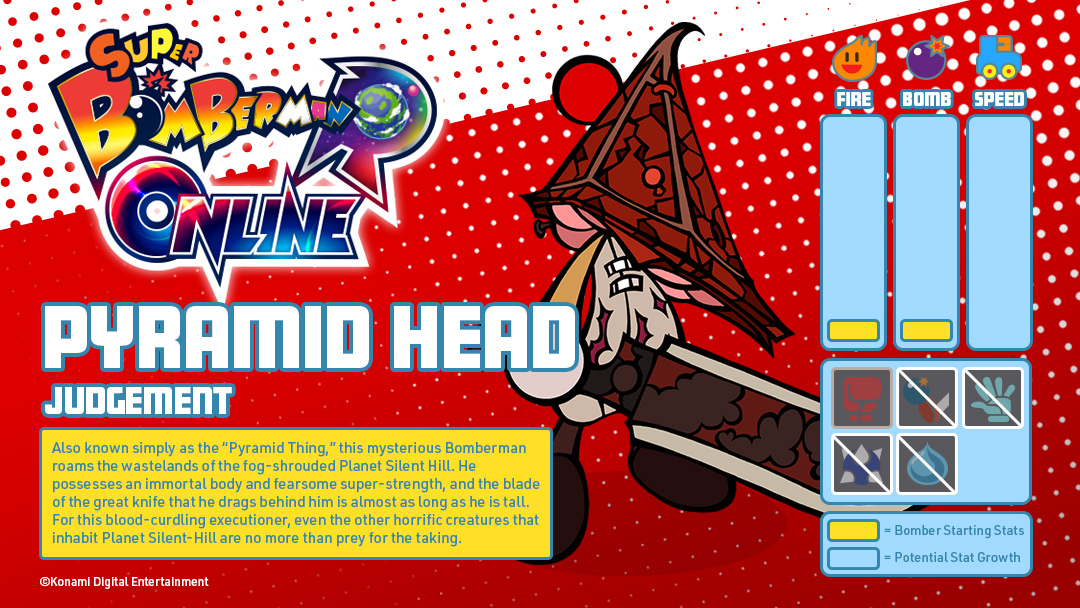 Pyramid Head character profile in Super Bomberman R Online.