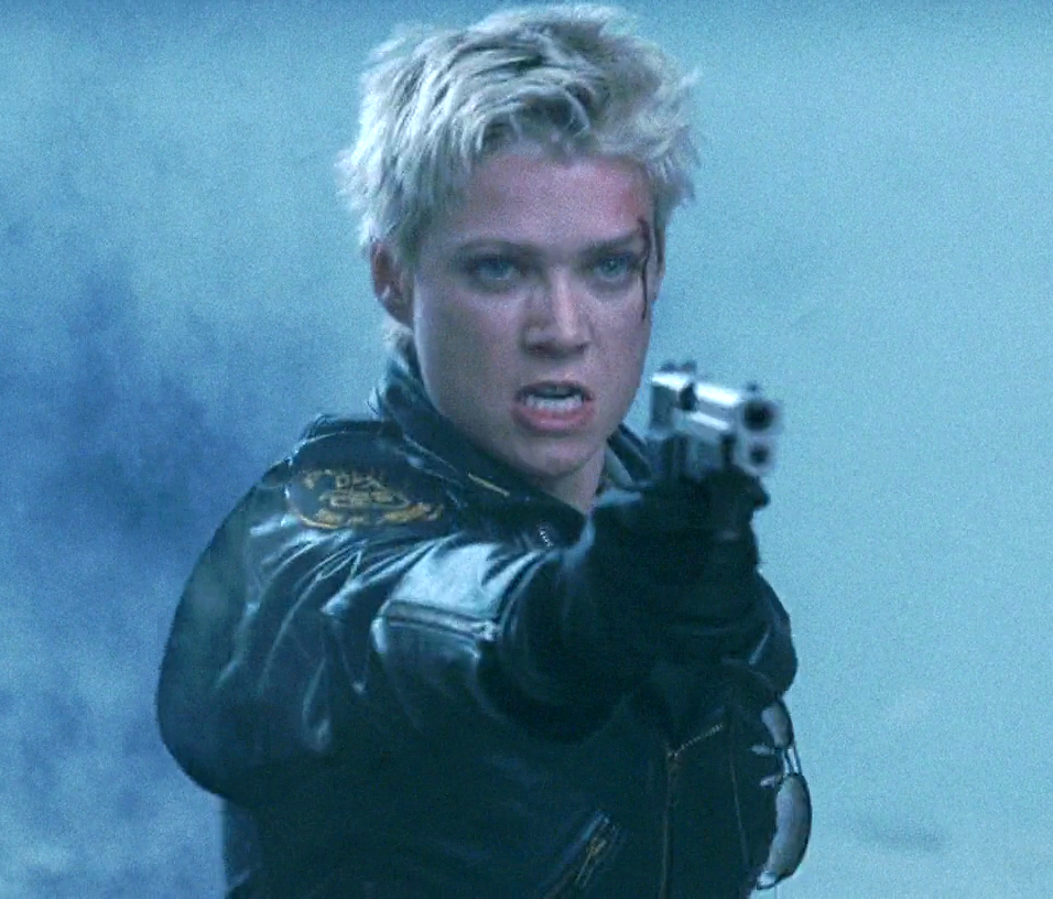 Sharon locks eyes with Dark Alessa.
