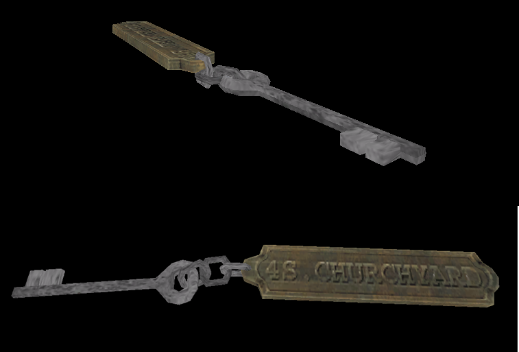 - Courtyard Key: The description reads, "An old fashioned key. '4S Churchyard' has been carved on it."