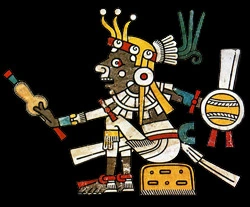 Tlahuizcalpantecuhtli appears quite different in the tablet, as he has the head of a "gluttonous" pig.