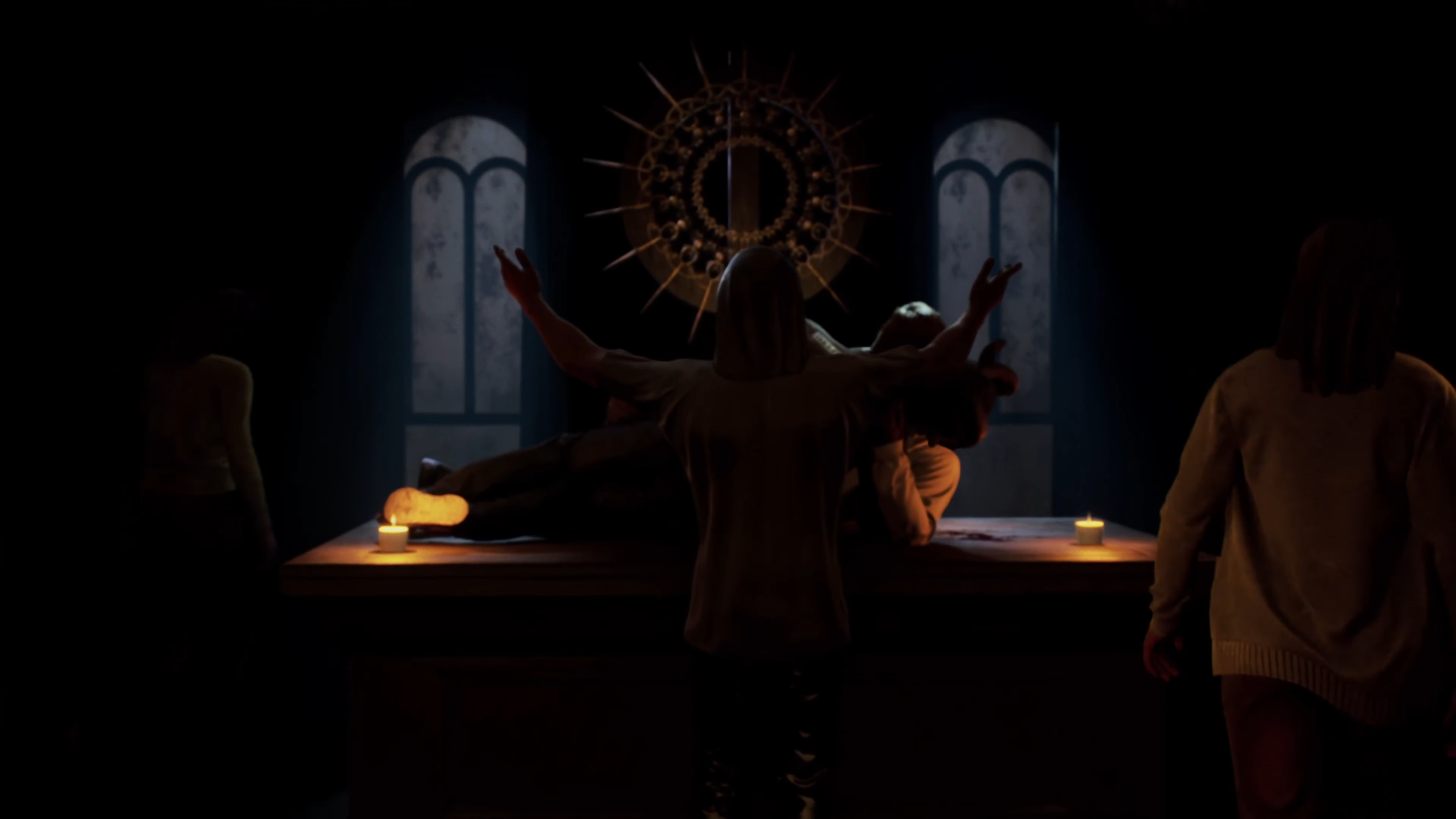 As he hoped, Xavier saw Eric join them for the merging ceremony. After giving the initial words to open the ritual, he received from Krista a ram hood to put on, and invited Eric to the altar with him. The ceremony was then carried out to completion, centered around Xavier and Eric with the participation of the other members. Proud of their work, Xavier led the participants out of the building for Eric to meet the night sky, only to find Rachel waiting for them outside.