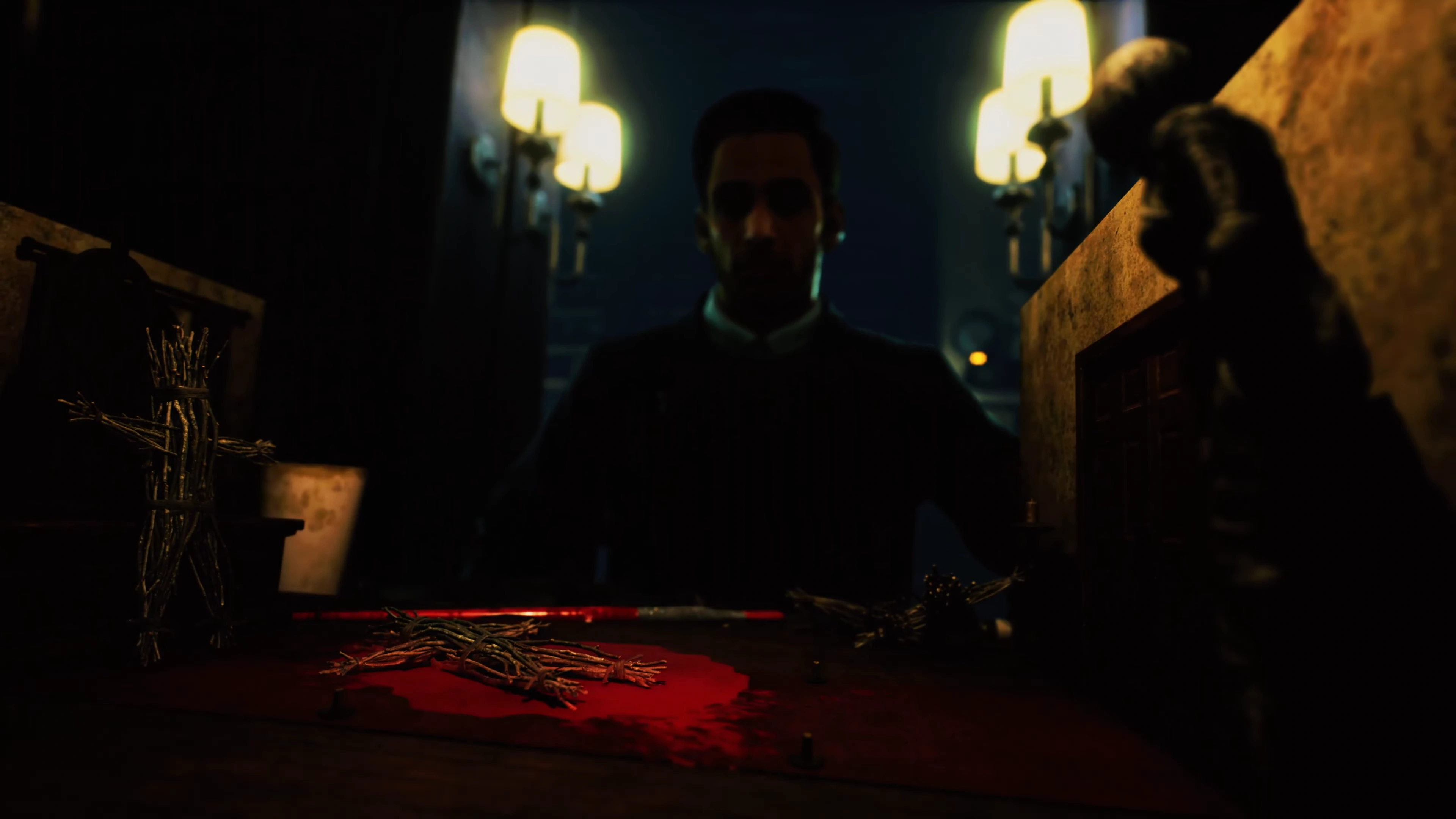 He eventually had a vision of a ritual, with two figures encountering a monster. He recreated the scene as a diorama with straw and clay figures, though it's unknown if he knew the identities of the people involved. This would shortly take place in the building of the Foundation, a cult operating in Hope's Junction, as a bloodletting ritual carried between Rachel Hernandez and Joy Cirelli went wrong when the Entangler appeared and killed the latter. [5]